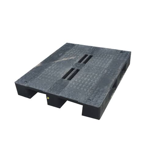 A medium- heavy duty, recon 1200mm x 1000mm plastic pallet. Not all the same and not all perimeter based. These are recon pallets and so they are not all identical and if you have a particular need based on pallet appearance please call us before placing the order. These are recon pallets and plastic is brittle – as such some may have chips in them but not so as to affect performance. They are stored outside and may need cleaning if appearance is critical. Alternatively, contact us here.